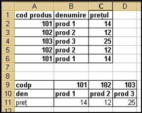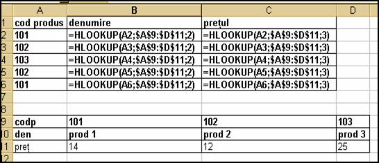 Exista si functia HLOOKUP care face cautari pe orizontala īntr-un tabel de tip Nomenclator. (Nomenclatorul este aranjat pe orizontala si de aceea se fac cautari pe orizontala).