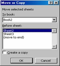 īn zona TO BOOK se alege fisierul īn care se va copia(muta) foaia de calcul