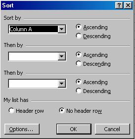 - NO HEADER ROW - daca nu am selectat si capul de table.