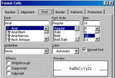 FORMAT CELLS se deschide o caseta de dialog cu mai multe sectiuni: