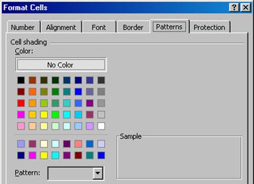 e) PATTERNS - selectam culoarea si modelul de umplere a celulelor