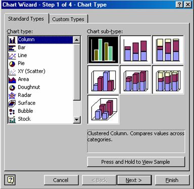 PASUL 1 - se alege tipul graficului si se da NEXT