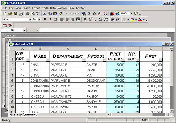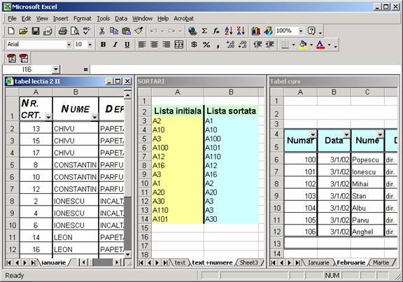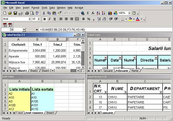 Obs. Este bine sa utilizezi facilitatea de aranjare a ferestrelor de lucru pentru cel mult trei registri de calcul deschisi la un moment dat, pentru ca fiecare fereastra sa ofere spatiu suficient de vizualizare.