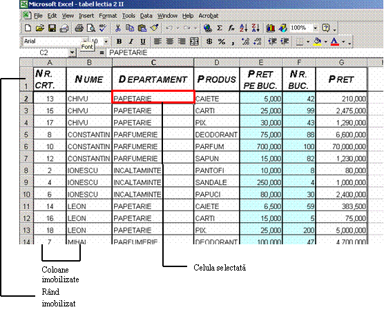 n Executa click pe celula care se situeaza imediat sub randul care se doreste imobilizat si la dreapta coloanei care se doreste imobilizata.