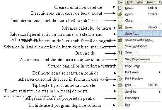 Comenzi rapide (dupa combinatia de taste si functia) EXCEL
