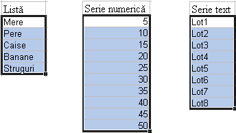 Umplere automata cu elementele unei liste (vezi capitolul Umplerea automata a celulelor);