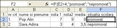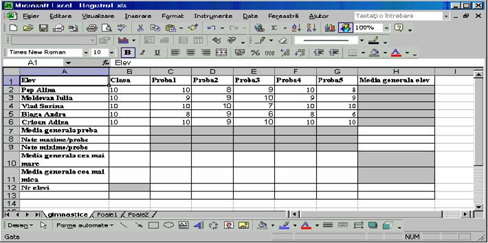 3. datele din coloana Nota finala se vor calcula ca fiind media aritmetica a celor doua note