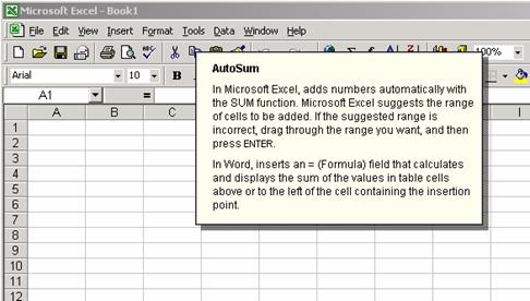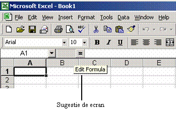Atunci cand lucrezi intr-un registru de calcul, daca plasezi cursorul mouse-ului pe orice element din fereastra, dupa o scurta pauza va apare o sugestie de ecran (ScreenTip) care va spune numele acelui element.