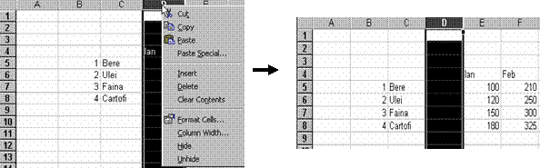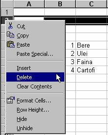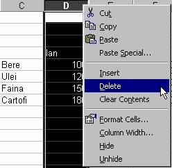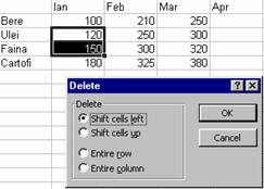La stergerea unei coloane, celelalte se vor deplasa spre stanga, la stergerea unei linii, celelalte se vor deplasa in sus; la stergerea unui grup de celule, puteti alege deplasarea celorlalte spre stanga sau in sus.