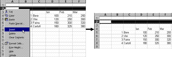 Cand inserati o coloana, cele existente sunt deplasate la dreapta. Cand inserati o linie, cele existente sunt deplasate in jos. Cand insera 515b12f ti un grup de celule, puteti alege deplasarea celulelor existente catre dreapta sau in jos.