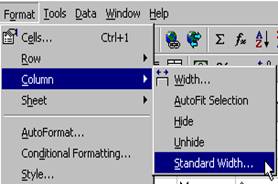 latimea standard a coloanelor?Pasul 1: Selectati coloana Standard Width din meniul Format/Column;