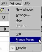 Pasul 2: Selectati comanda Freeze Panes din meniul Windows (sau executati clic asupra butonului Freeze Panes din bara cu instrumente):