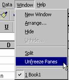 Pasul 1: Selectati comanda Unfreeze Panes din meniul Windows.