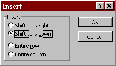 cu ajutorul comenzii Insert ; Cells… . Apare fereastra Insert cu patru optiuni posibile (fig. 1.13);