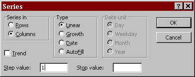 Excel are definite mai multe serii de date, cum ar fi lunile anului, zilele saptamanii, etc. si permite generarea automata de serii numerice, cu un anumit pas si intre anumite limite.