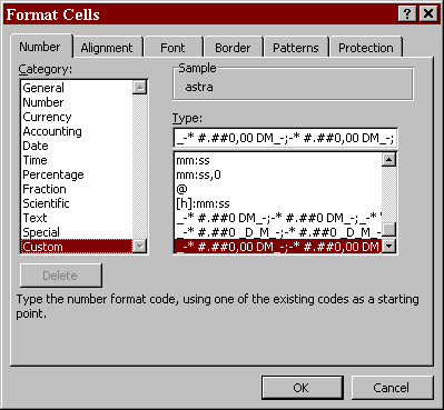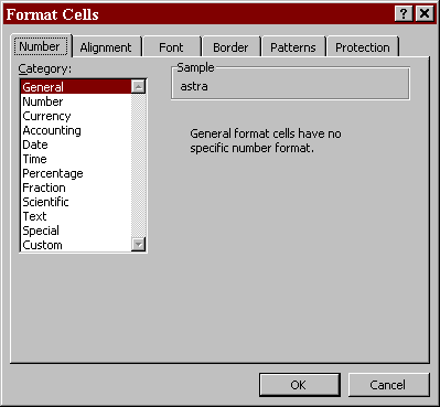 Fisa Number - utilizat pentru aplicare formate de numere. El cuprinde urmatoarele categorii: - General, Number, Currency, Accounting, Date, Time, Percentage, Fraction, Scientific, Text, Special, Custom. (vezi fig. 1.17). Pentru fiecare din aceste categorii are predefinite mai multe coduri. De exemplu: