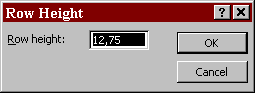 Pentru aceste operatii se utilizeaza meniul Format, urmand traseul Column ; Weight respectiv Row ; Height (vezi fig. 1.19). In caseta Row height (vezi fig. 1.20), utilizatorul poate preciza dimensiunea dorita.