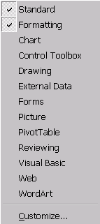 alte palete care pot fi selectate din meniul vertical al comenzii Toolbars din meniul View al meniului orizontal: