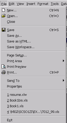 în meniul vertical al optiunii File este afisata o lista de identificatori de fisier care reprezinta ultimele agende de lucru consultate; prin selectarea directa a unui identificator este deschisa agenda de lucru corespunzatoare.
