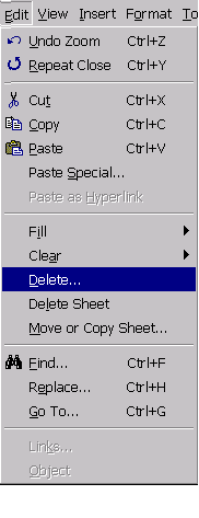 stergerea este operatia inversa inserarii, în cazul obiectelor Excel, adica produce deplasarea obiectelor ramase în locul celor sterse, conform acelorasi reguli ca la inserare. stergerea se realizeaza cu optiunea Delete... sau cu optiunea Delete Sheet a comenzii Edit din meniul orizontal;