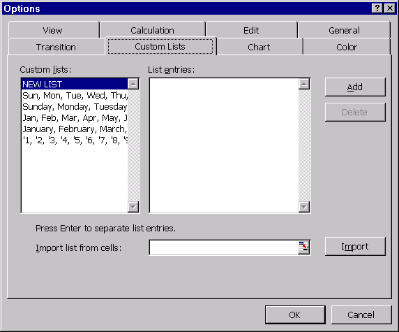 lista utilizator este un set ordonat de valori de acelasi tip; o lista utilizator se defineste cu butonul Custom Lists din comanda Options... a optiunii Tools din meniul orizontal. Daca un domeniu este format dintr-o singura celula în care este memorat un singur element dintr-o lista utilizator, prin procedeul de autoumplere, în celulele adiacente domeniului sunt memorate, în ordine, celelalte elemente ale listei utilizator; lista este parcursa circular: dupa ultimul element din lista urmeaza primul element din lista.