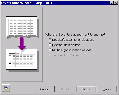 generatorul de tabele pivot este un instrument pentru generarea în patru pasi a unor tabele de sinteza asupra datelor continute în celulele unui anumit domeniu. Generatorul se apeleaza prin comanda Pivot Table... a optiunii Data din meniul orizontal.