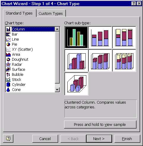 La primul pas se selecteaza tipul de reprezentare grafica, din lista afisata alaturi de imaginea obtinuta, pentru fiecare tip de reprezentare în parte.