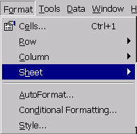Cu comanda Sheet a optiunii Format se poate redenumi o foaie de calcul (Rename...), se poate face invizibila si vizibila din nou, o foaie de calcul, cu comenzile Hide si Unhide... ;