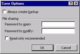 In caseta Save Options introdu parola in campul Password to open (Parola pentru deschidere). Nici un utilizator care nu cunoaste parola nu poate deschide fisierul.
