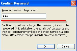 Figura MSExcel - Reconfirmare parola de deschidere fisier