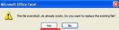 Se va actiona butonul Save din fereastra de salvare a documentului, confirmand, daca se cere, prin selectarea butonului Yes inlocuirea versiunii precedente a documentului: