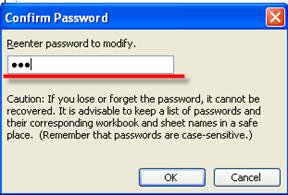 Figura MSExcel - Confirmare introducere parola la modificarea fisierului