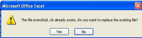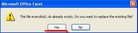Se va actiona butonul Save din fereastra de salvare a documentului, confirmand eventual prin Yes inlocuirea versiunii precedente a documentului: