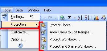 Se acceseaza meniul Tools / Protection / Protect Sheet;