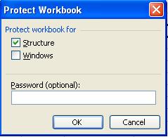 Se acceseaza meniul Tools / Protection / Protect Workbook;