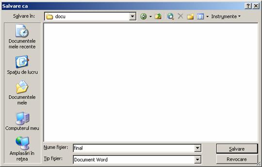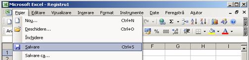 Din aceasta fereastra putem alege unde anume sa salvam registrul de calcul (e.g. īn Documentele mele, sau de pe oricare din partitiile calculatorului (A:, C:, etc.). De asemenea, īn acesta ferestra putem da un nume registrului nostru. Acesta poate fi numele generat automat de catre Microsoft Excel sau poate fi orice alt nume pe care noi dorim sa-l dǎm acestui fisier. Īn meniul Fisier avem sub optiunea Salvare si optiunea Salvare ca (Save as.). Aceasta ne permite sa salvam continutul registrului activ cu un alt nume. Cu alte cuvinte, sa avem un registru identic cu cel anterior dar care va avea un alt nume.