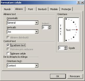 Īn fereastra astfel deschisa (Formatare celule - Format cells) dati click pe optiunea Aliniere (Align)