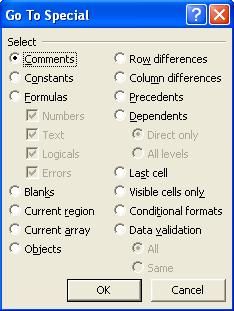 Formulas - selecteaza toate celulele care contin formule. Casetele de selectare de sub aceasta optiune definesc tipul de formula la care vreti sa ajungeti.
