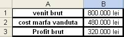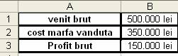 Īn exemplul de mai sus, s-ar putea numi scenariul cazului cel mai defavorabil, completarea celulei B1 cu valoarea 500.000 LEI si a celulei B2 cu valoarea 350.000 LEI.