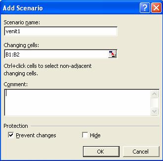 v Īn caseta Scenario name, tastati un nume pentru scenariu (venit1).