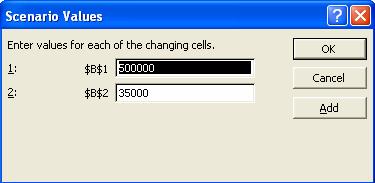 v Īn caseta de dialog Scenario Values, tastati valorile pe care le doriti pentru celulele modificabile.