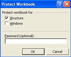 Structure - Protejeaza structura unui registru de lucru astfel īncāt foile sa nu poata fi sterse, mutate, ascunse, reafisate sau redenumite;