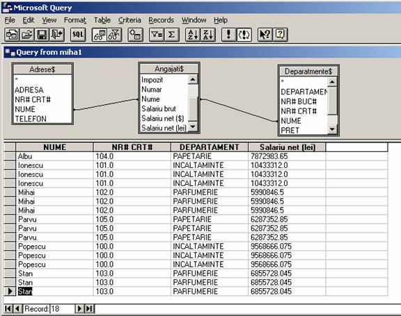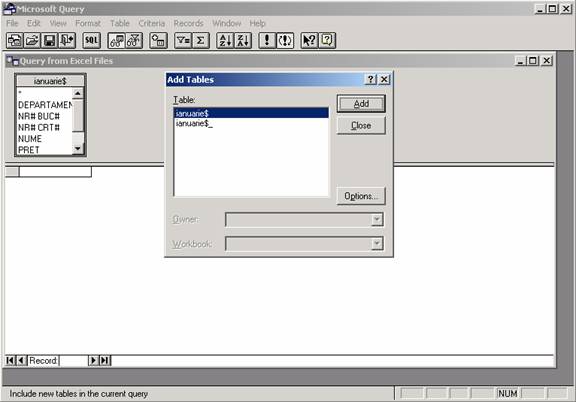 pur si simplu dublu click pe tabelul dorit. Microsoft Query afiseaza