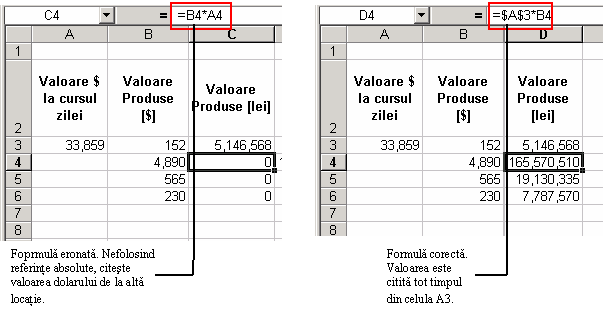 Câteodata este necesar însa sa te referi la o aceeasi celula din foaia de calcul, în fiecare copie a formulei. În acest caz trebuie sa folosesti referinte absolute.