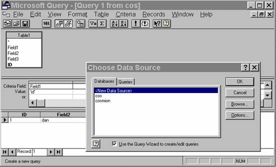 Se afiseaza fereastra MS QUERY si caseta de dialog Select Data Source