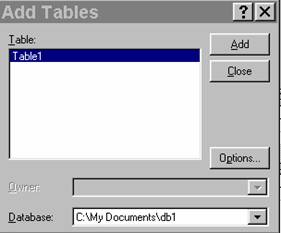se va afisa caseta de dialog Add Tables