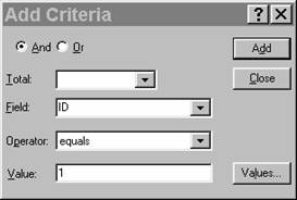 se deschide fereastra Add Criteria.