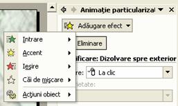 particularizata (sau se foloseste meniul Expunere diapozitive Animatie