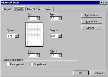 Se alege Fisier Initializare pagina/File Page Setup (se afiseaza caseta de dialog Initializare pagina/Page Setup