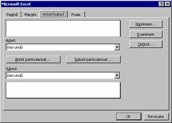 Pentru o foaie de lucru care se tipareste, se poate preciza un antet si/sau un subsol inclus, sau se poate crea antet si/sau subsol particularizat.